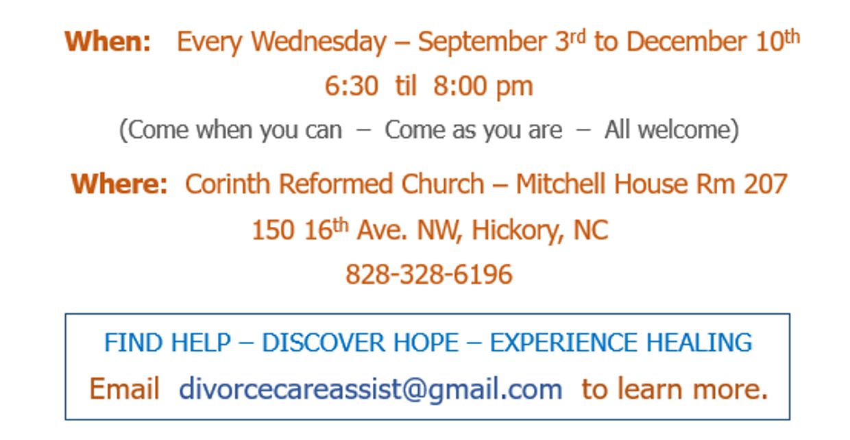 DivorceCare is a Community Support Group for individuals struggling with Separation or Divorce - join us in a safe, confidential, and non-judgmental place with a group of people much like yourself.